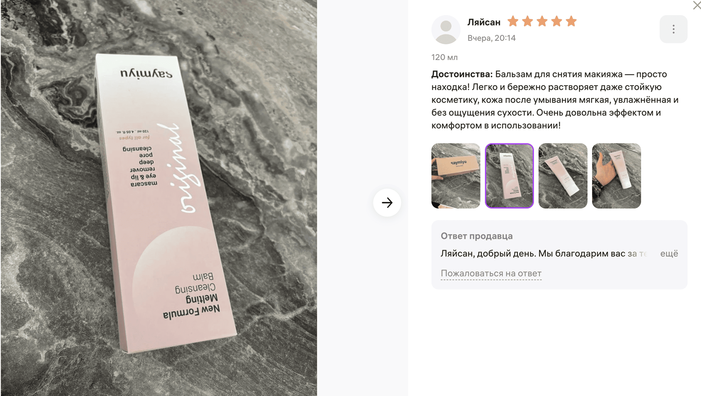 Ляйсан Достоинства:Бальзам для снятия макияжа — просто находка! Легко и бережно растворяет даже стойкую косметику, кожа после умывания мягкая, увлажнённая и без ощущения сухости. Очень довольна эффектом и комфортом в использовании!
